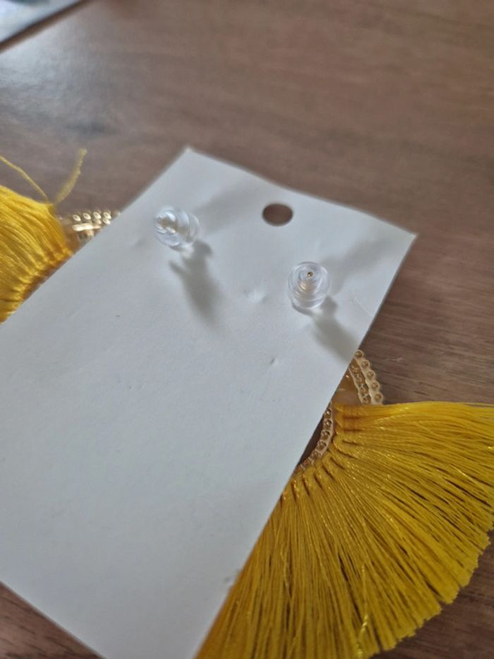 Boucles d'oreilles à franges neuves jaunes - photo numéro 2