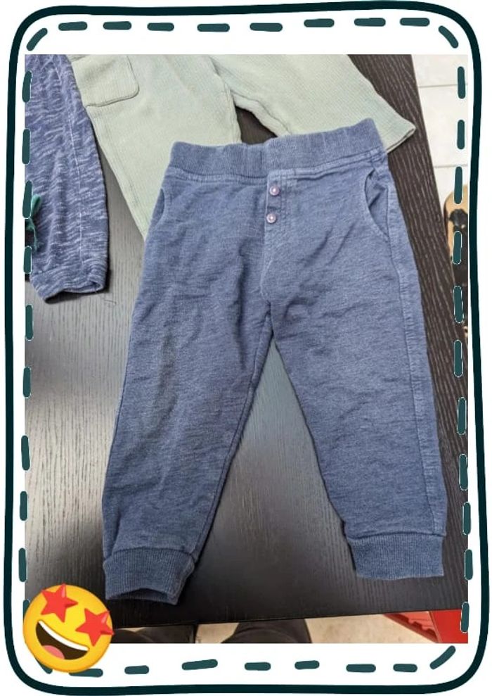 En tbe 2 Zara (vert avec les écureuils 🐿️, bleu chiné) 1 Z 1 Vertbaudet Les Zara sont en 18-24 mois mais taillent grands donc plutôt 24 mois #dinooblogarcon