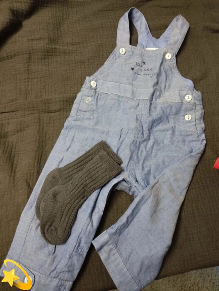 Ensemble garçon 6 mois, sweat et salopette + body et chaussettes offerts