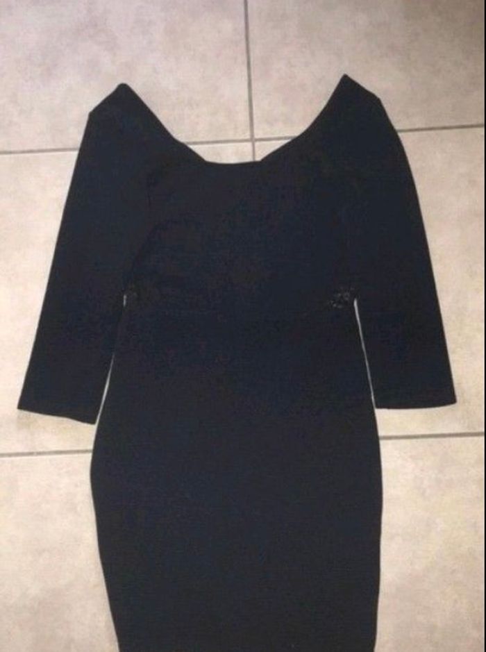 robe fille noire avec bande dentelle devant et derrière manche 3/4 arrive au genoux marque only