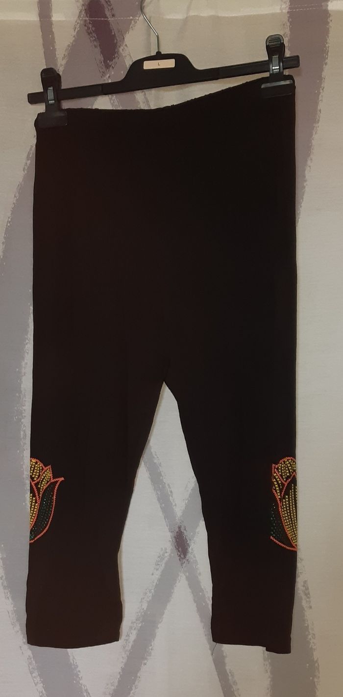 Ensemble Tee-shirt et legging court femme Taille XL/XXL Noir Pas de riches et bien Noir, effet de la photo Très bon état