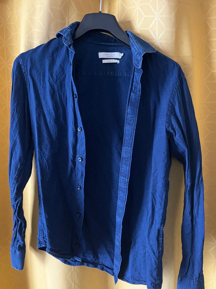 Chemise bleue épaisse de la marque Celio, atelier, coupe slim, fit taille S. 37/38.