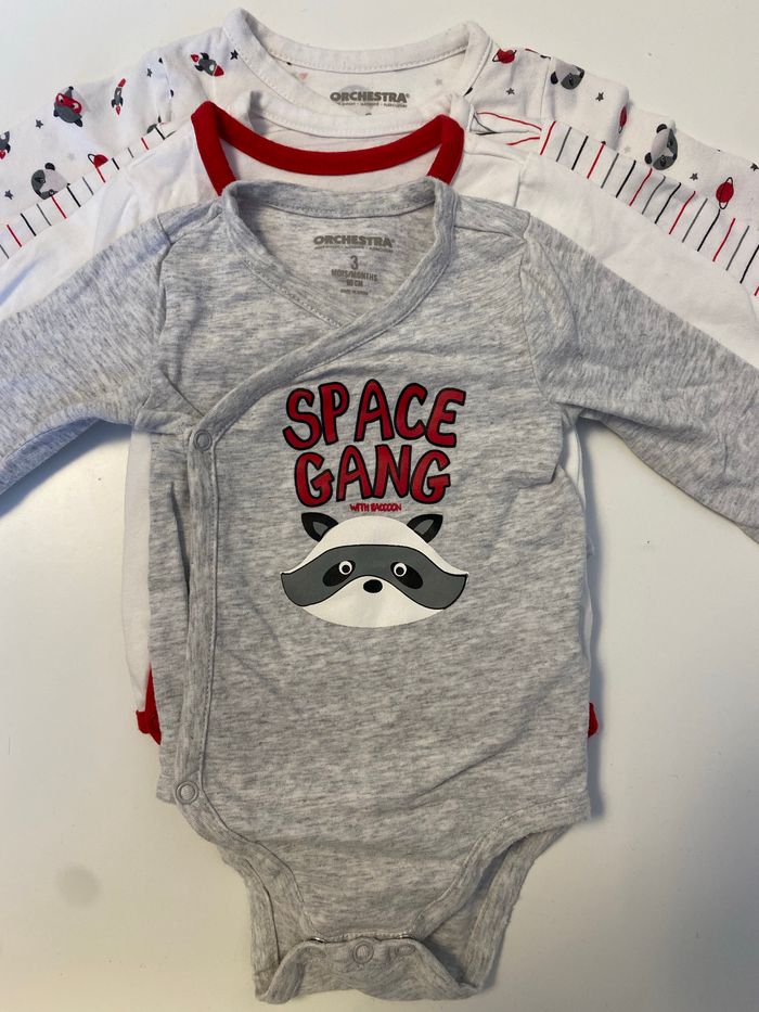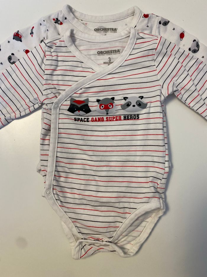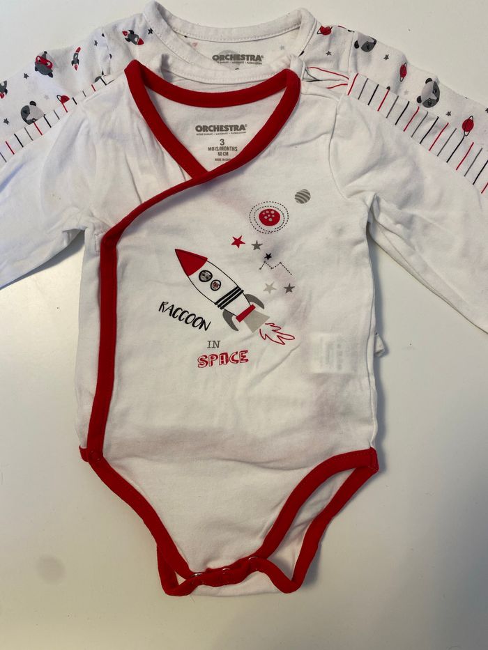 Lot 4 bodies Orchestra Manches longues et s’ouvrent devant Taille 3 mois (D’autres lots comparables se trouvent dans mon dressing 🙂)