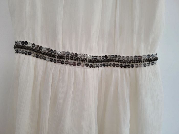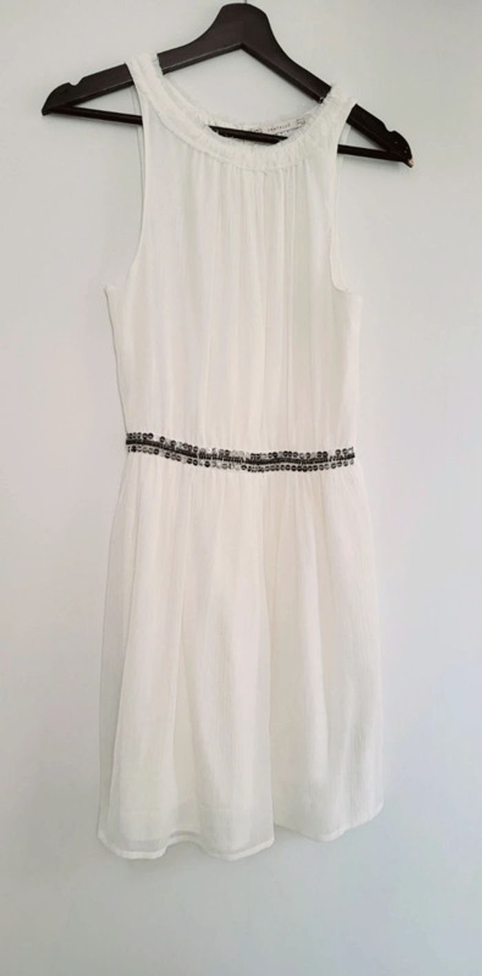 Robe courte sans manches taille 36/38 avec une "ceinture" petites perles et sequins sur le devant. Bon état Longueur 90cm #robe #vestido #dress #vestito #jurk #kleid #vestir #elbise #sukienka #zaratrafaluc
