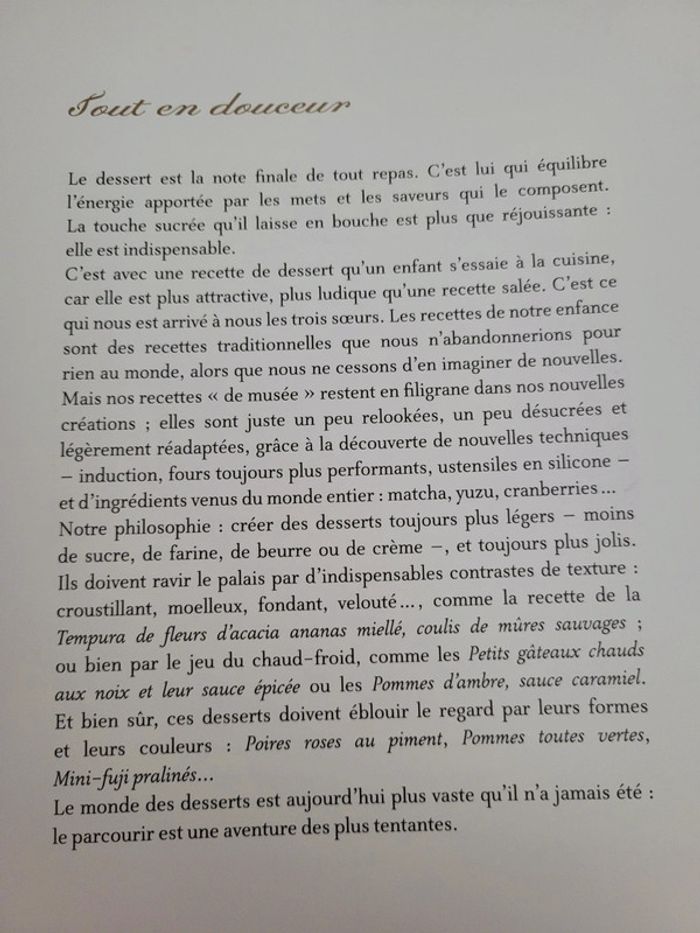 Les sœurs Scotto, journalistes et auteurs d'ouvrages gastronomiques, répertorient dans ce livres, toutes les recettes de leurs desserts préférés.
