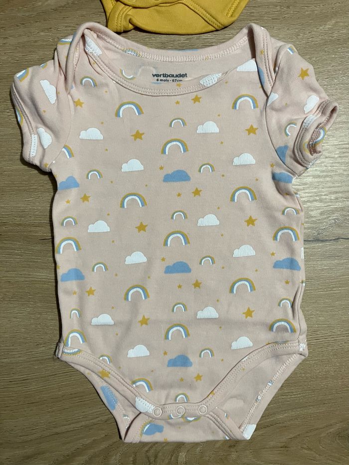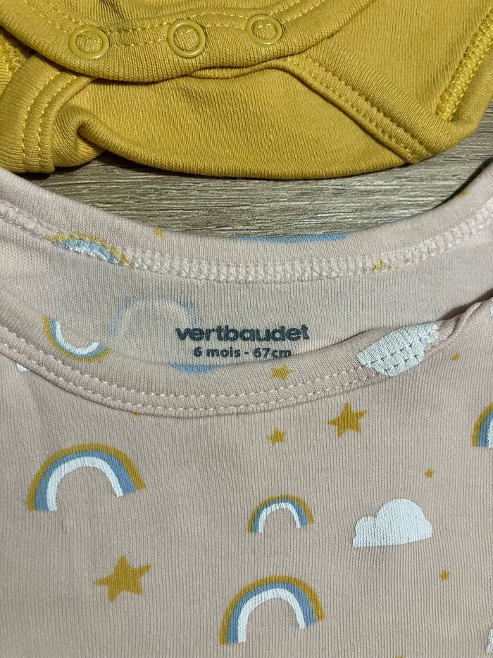 Lot de 2 bodies à manches courtes à motifs arc-en-ciel Vertbaudet taille 6 mois Parfait état