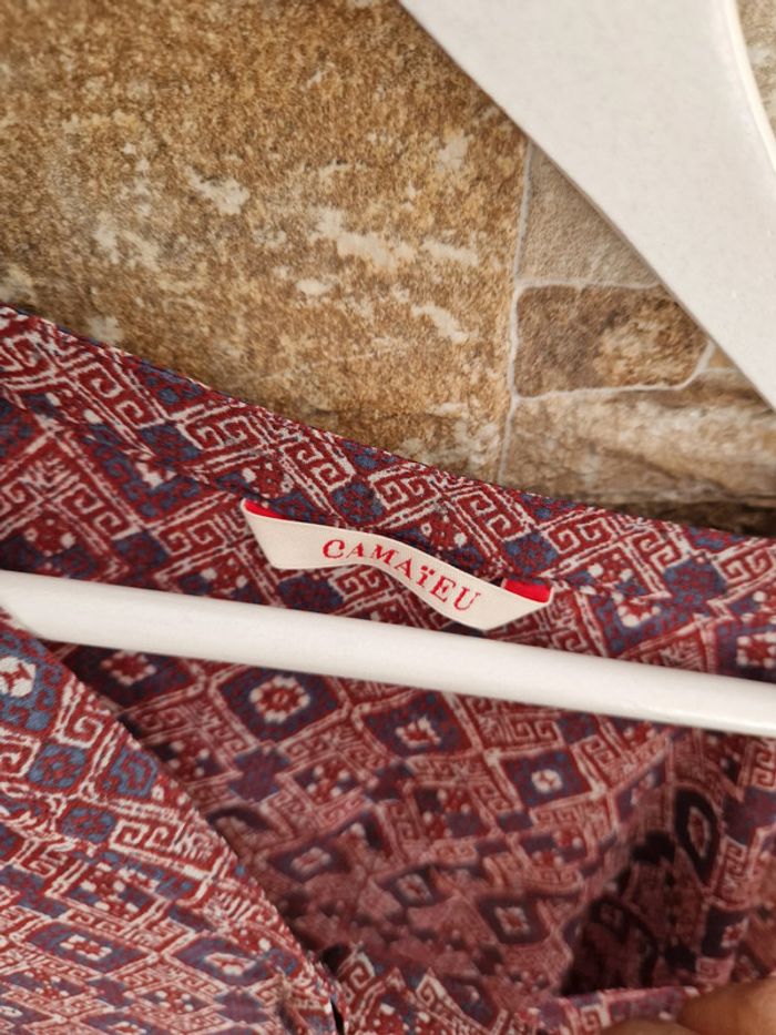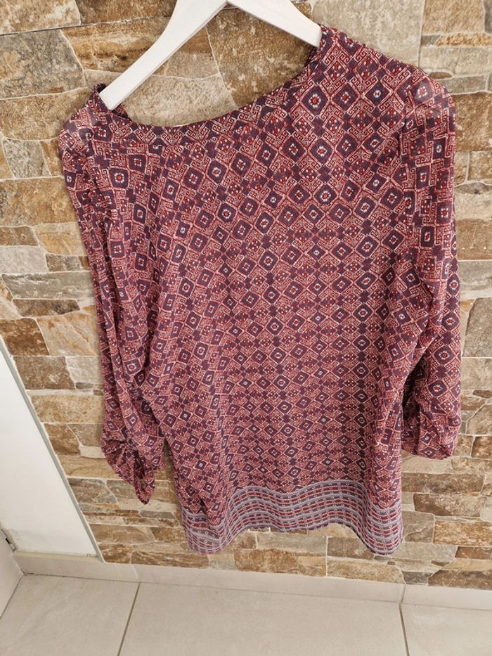 1 haut blouse rouge Bordeau gris fonce voile léger taille 42 marque Camaieu - photo numéro 7