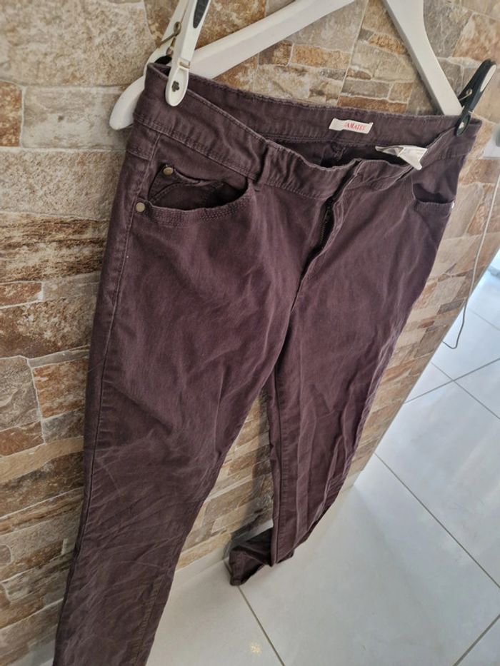 1 pantalon jean marron bleu stretch marque camaïeu taille 46 - photo numéro 2