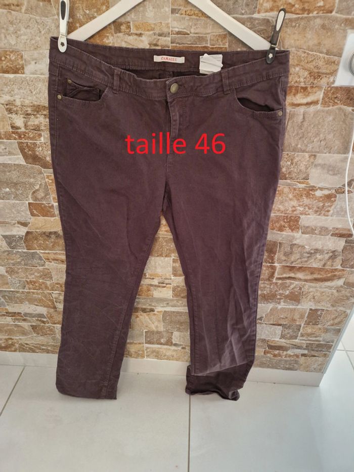 1 pantalon jean marron bleu stretch marque camaïeu taille 46