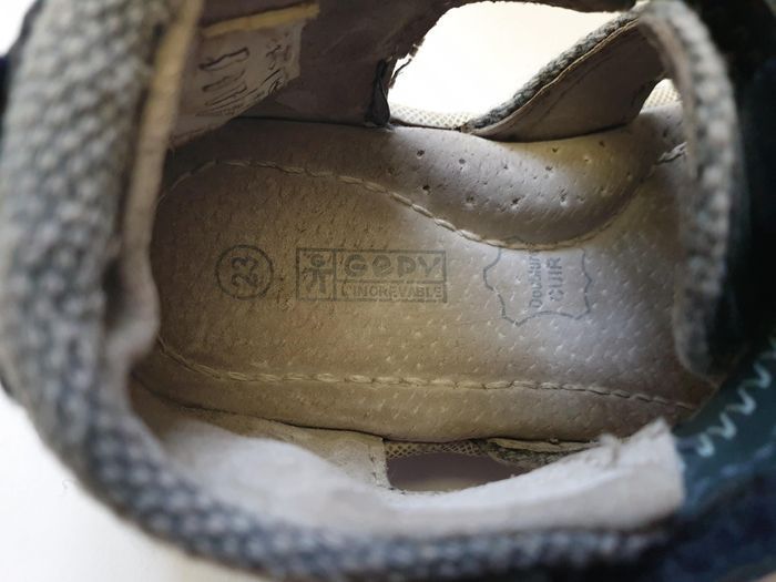 Nu-pieds intérieur cuir Semelles intérieures et extérieures légèrement usées (6ème et 9ème photo) Le devant des chaussures est égratigné (7ème et 8ème photo) Prix neuf: 29,99 euros