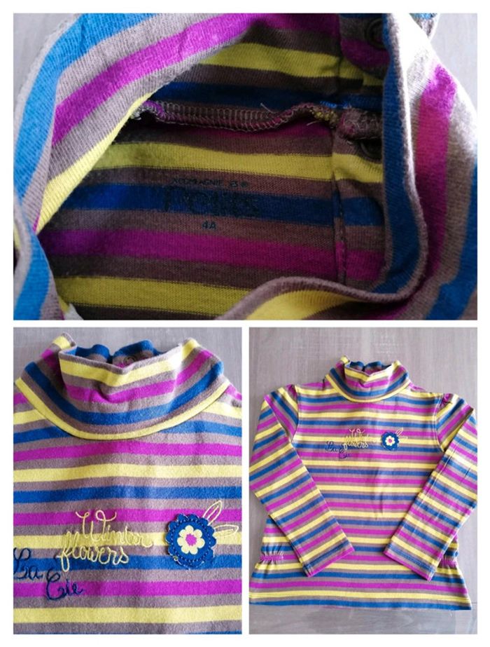 T Shirt manches longues rayé col montant 4 ans - photo numéro 1