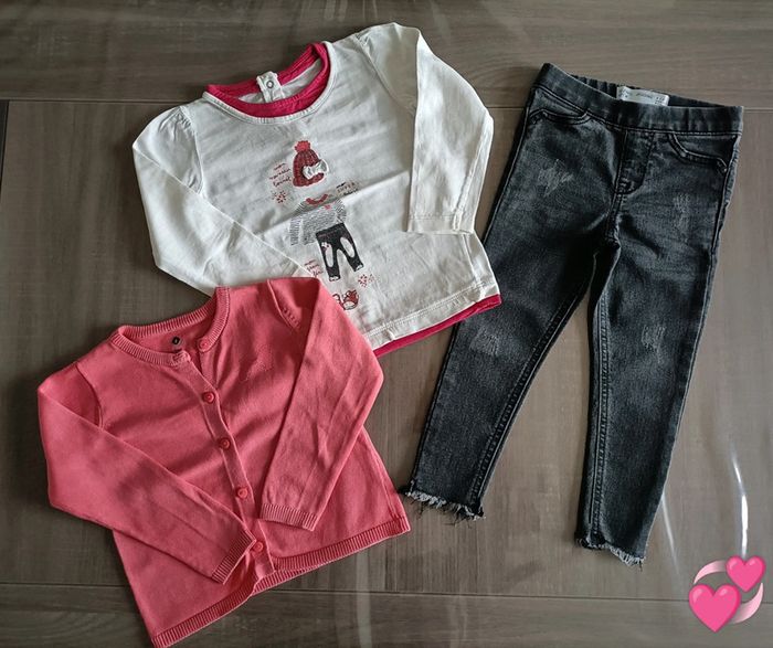 Gilet Grain de blé, T. Shirt Gémo & jegging Denim & co En très bon état #sandraf1222_fille24mois #graindeblé #gemo #denimco #fille2ans #fille24mois
