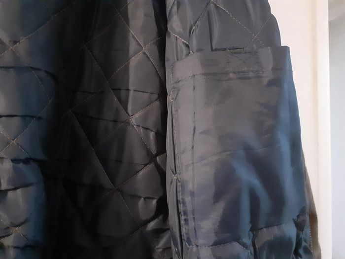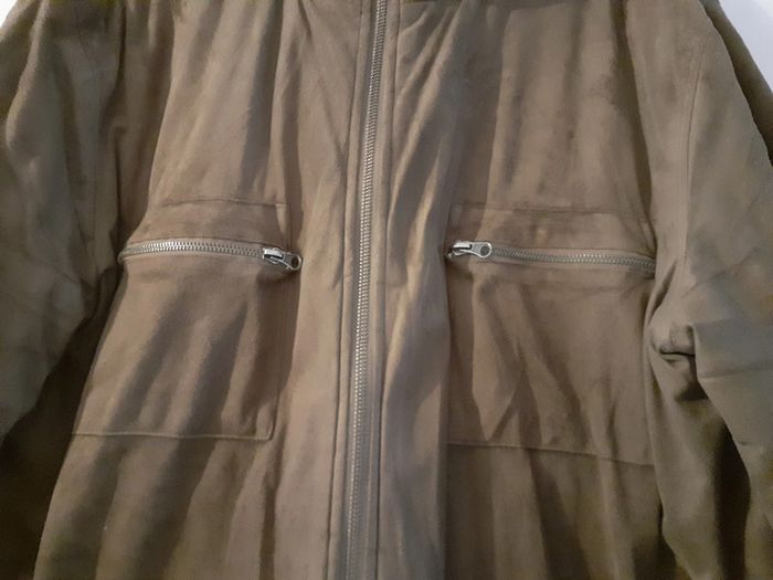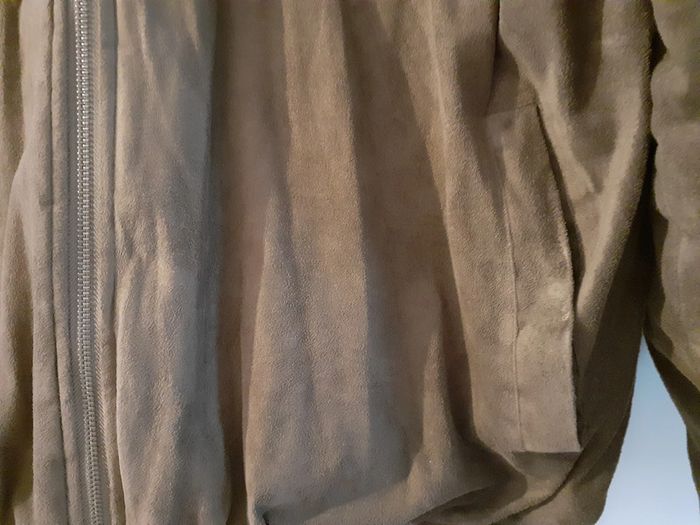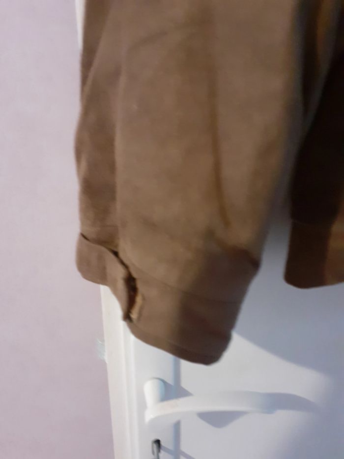 Manteau pour homme en suédine marron clair. Intérieur matelassé. Poche qui se ferme avec une pression et poche de poitrine avec fermeture éclair. Poche intérieur. Scratch au poignet. Atlas for men. 4XL. Dimension : Épaule : 56cm environ Aisselle à aisselle : 70cm environ Longueur : 74cm environ Longueur manche : 63cm environ En très bon état Envoi rapide, soigné et sécurisé.