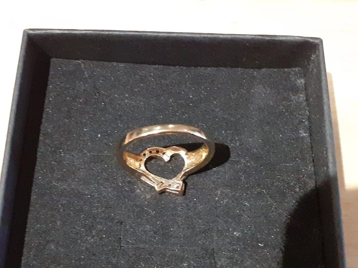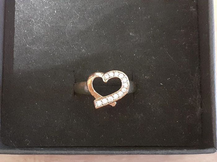 Bague en acier inoxydable doré, en forme de cœur avec zircon. Taille 58 En très bon état Envoi rapide,soigné et sécurisé.
