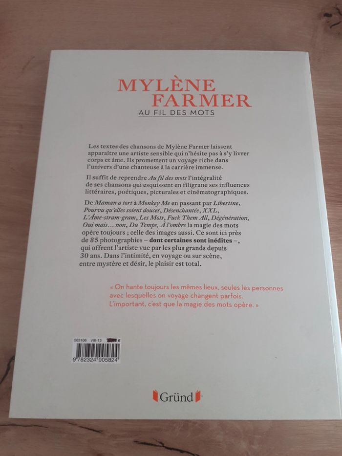 Livre Mylène Farmer " au fil des mots" de Benoît Cachin édition Grand de 2013. 235 pages. En excellent état Envoi rapide, soigné et sécurisé.