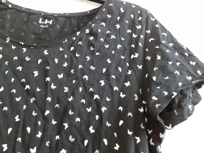 T-shirt femme noire avec papillons blanc et argenté taille XL - photo numéro 2
