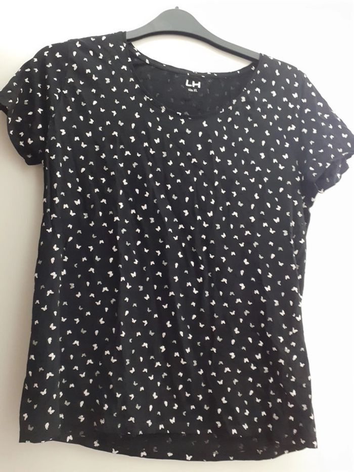 T-shirt femme noire avec papillons blanc et argenté taille XL - photo numéro 1