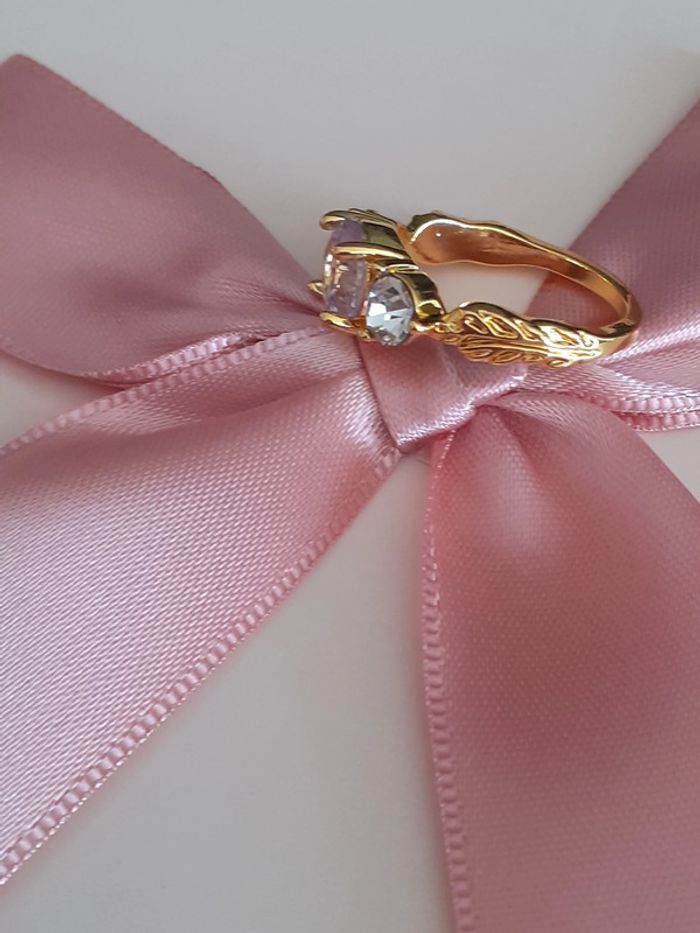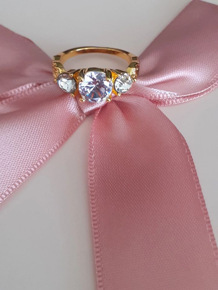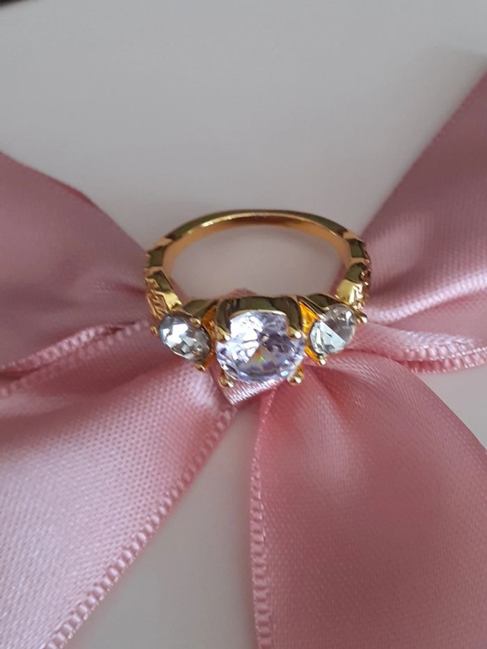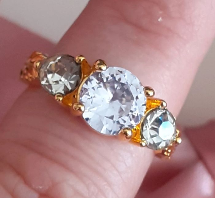 Bague en acier dorée avec 3 gros zircon blanc brillant. Taille 58. En excellent état Envoi rapide, soigné et sécurisé.