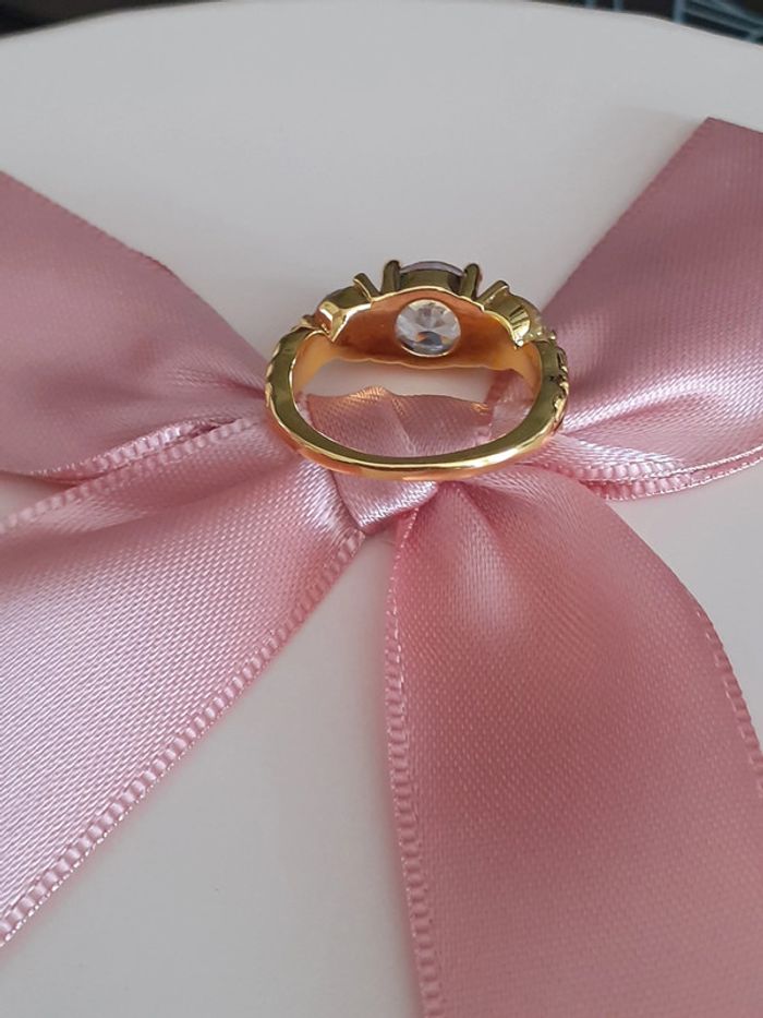 Bague acier dorée zircon blanc brillant taille 58 - photo numéro 5