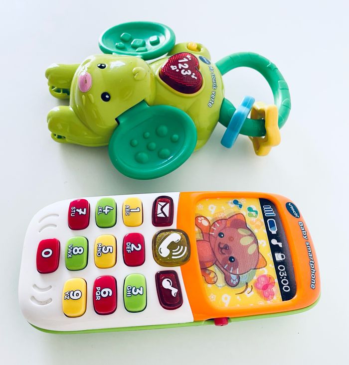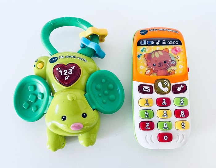 Magnifique lot de 2 jouets musicaux vtech. Neufs car nous les avions acheté pour les laisser chez les grands parents et nous n’y sommes pas allés de l’année
