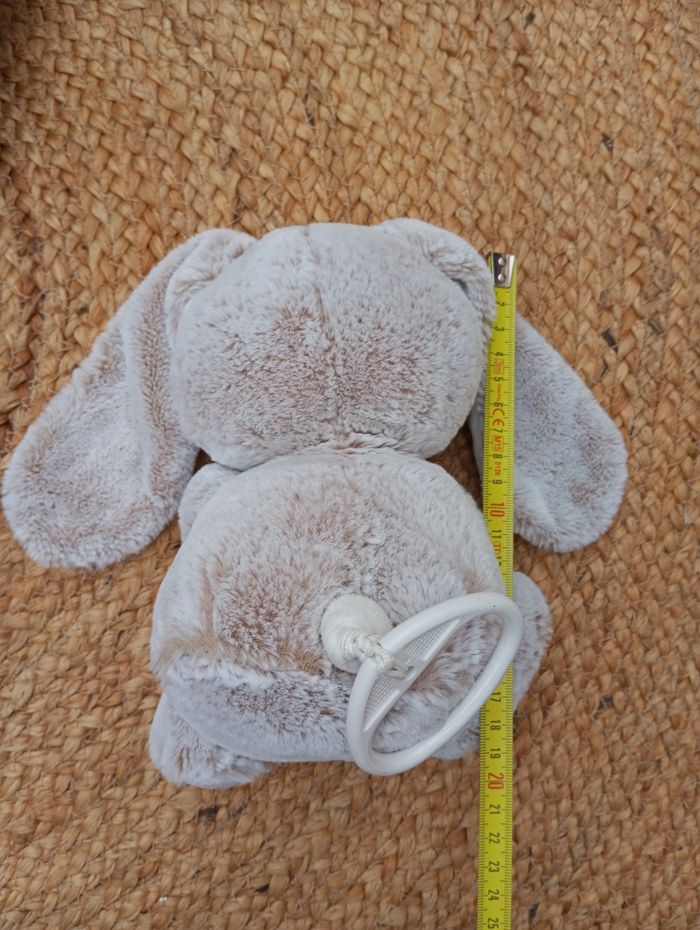 #DCR_nicotoysimbakiabi #DCR_lapin Nicotoy Simba Kiabi peluche musicale Lapin marron blanc Coussin broderies mon doudou Étiquette de composition absente C003