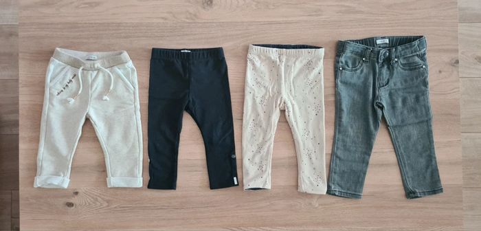 Lot de 4 bas 12 mois IKKS - 1 bas beige taille élastique - 1 legging bleu marine - 1 legging réversible - 1 bas qui se règle a la taille #dresskids12m #dresskidsikks
