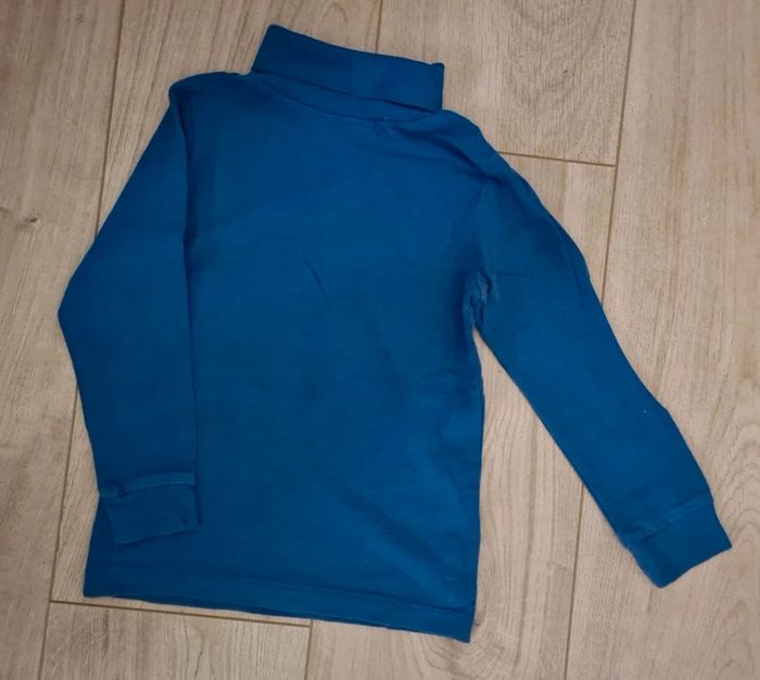 Lot de 4 hauts manches longues col roule 4 ans Les 2 bleus viennent de monoprix et le rose de decathlon #dresskids4ans