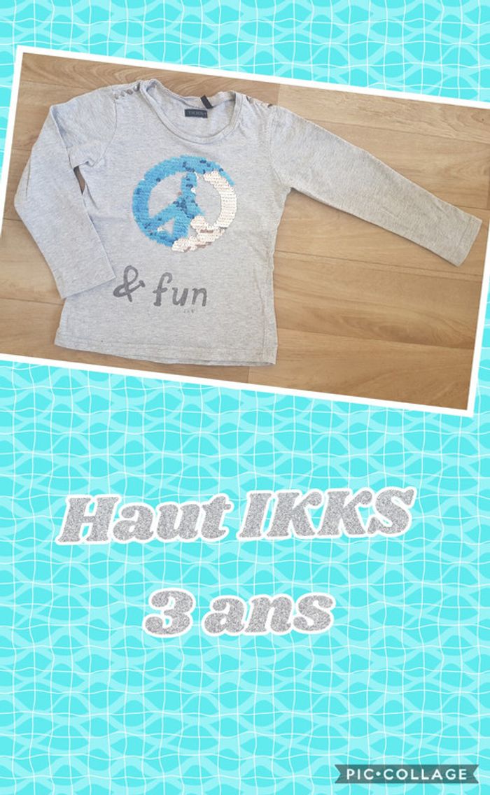 Haut ikks 3 ans Avec sequins (gris ou bleu)