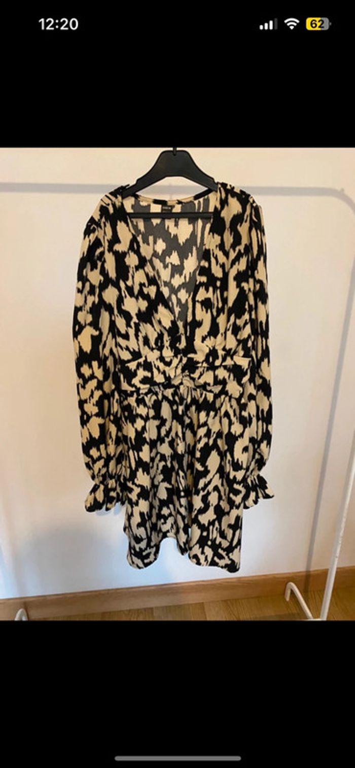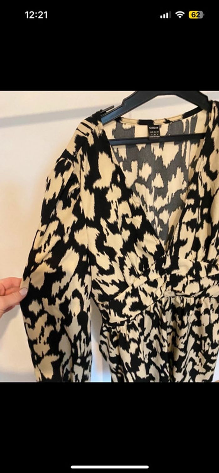 Jolie robe à motifs et détails beige et noire, ouverture sur le côté • SHEIN • Taille S - photo numéro 1