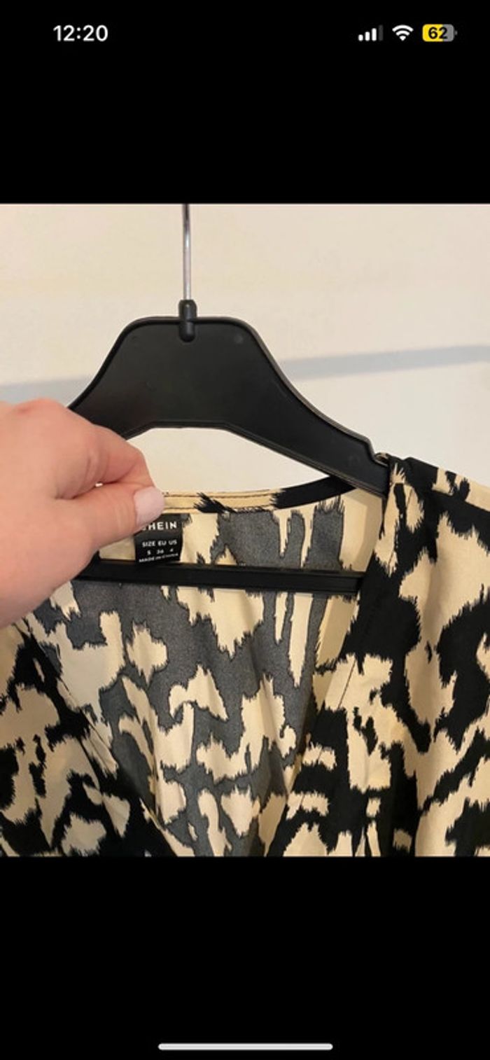 Jolie robe à motifs et détails beige et noire, ouverture sur le côté • SHEIN • Taille S - photo numéro 5
