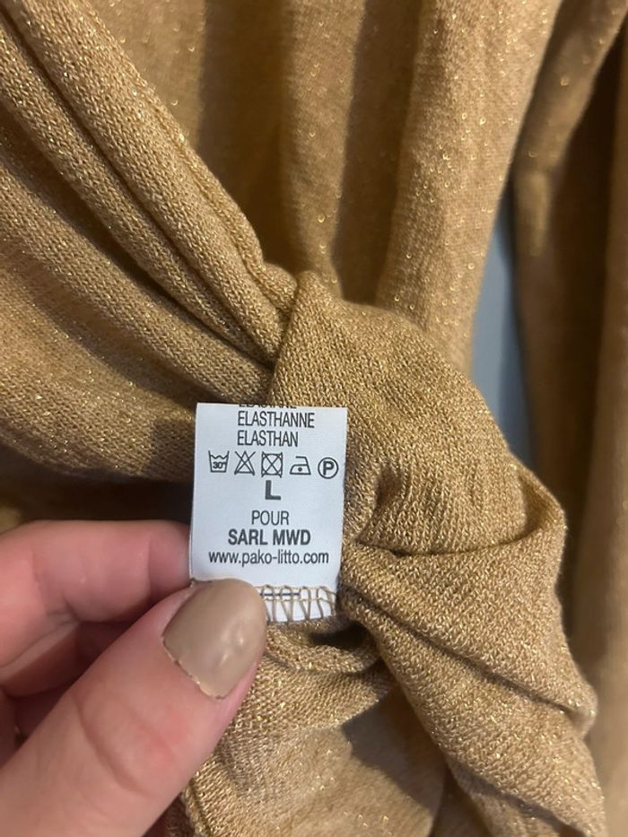 Petit top à paillettes et manches longues doré • Pako Litto/vintage • Taille L/40 - photo numéro 8