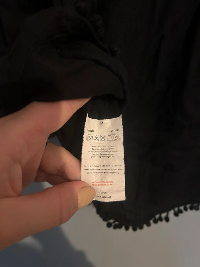 Petite blouse noire avec motifs et détails, manches 3/4 • Icode • Taille M/38 En très bon état #blousenoire #motifs #details #icode