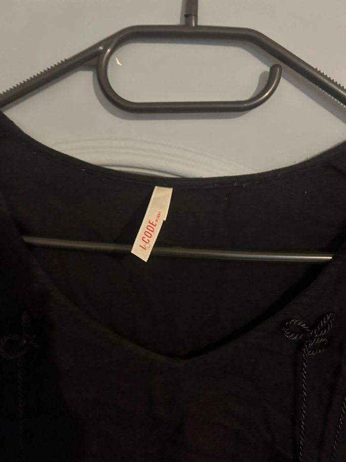 Petite blouse noire avec motifs et détails, manches 3/4 • Icode • Taille M/38 - photo numéro 1