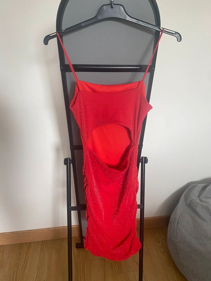 Taille XS - Robe rouge à paillettes ouverte dans le dos #shein #taillexs