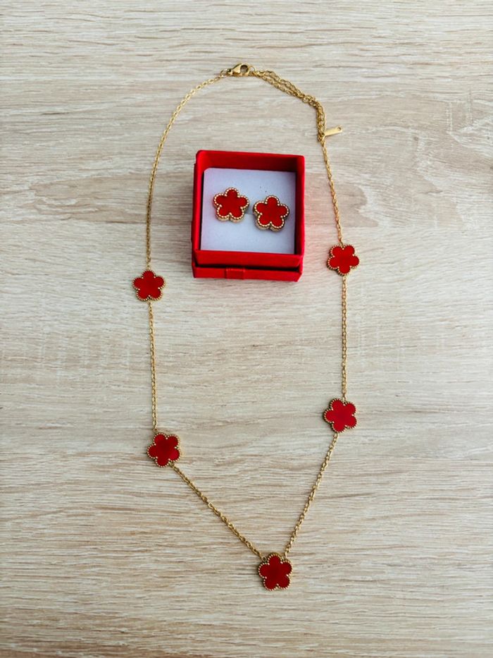 Parure acier inoxydable bijoux tendance fleur doré rouge - photo numéro 1