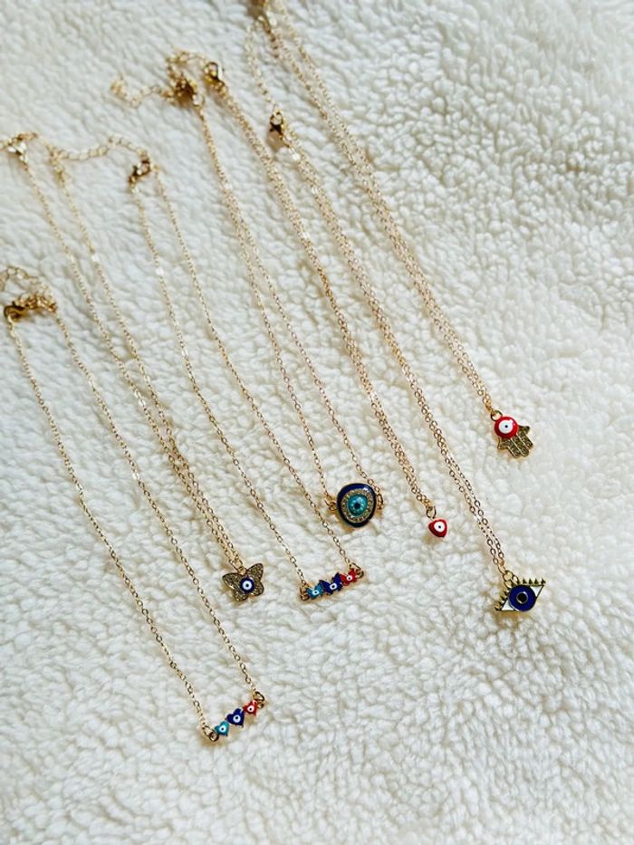 Lot colliers œil bijoux fantaisie tendance pendentif cadeau femme