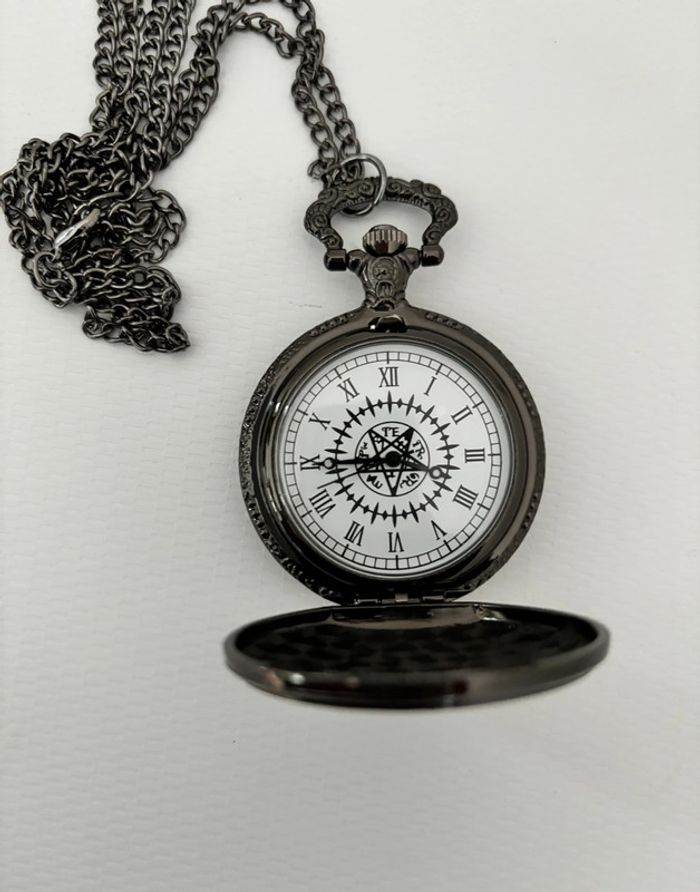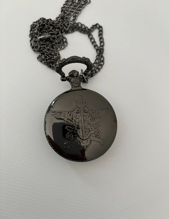 Montre à gousset noir vintage inscription déguisement pendentif noir cadeau homme papa - photo numéro 2