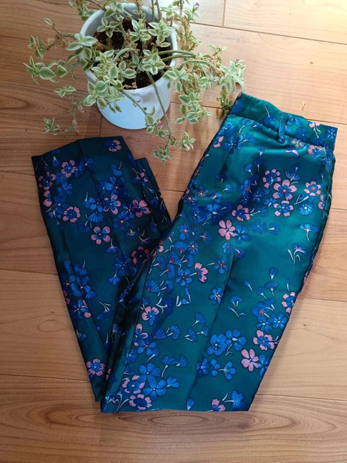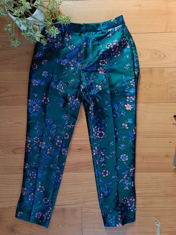 Pantalon fleuris de la marque pimkie Coupe cigarette Très bon état Matière satiné Taille 36