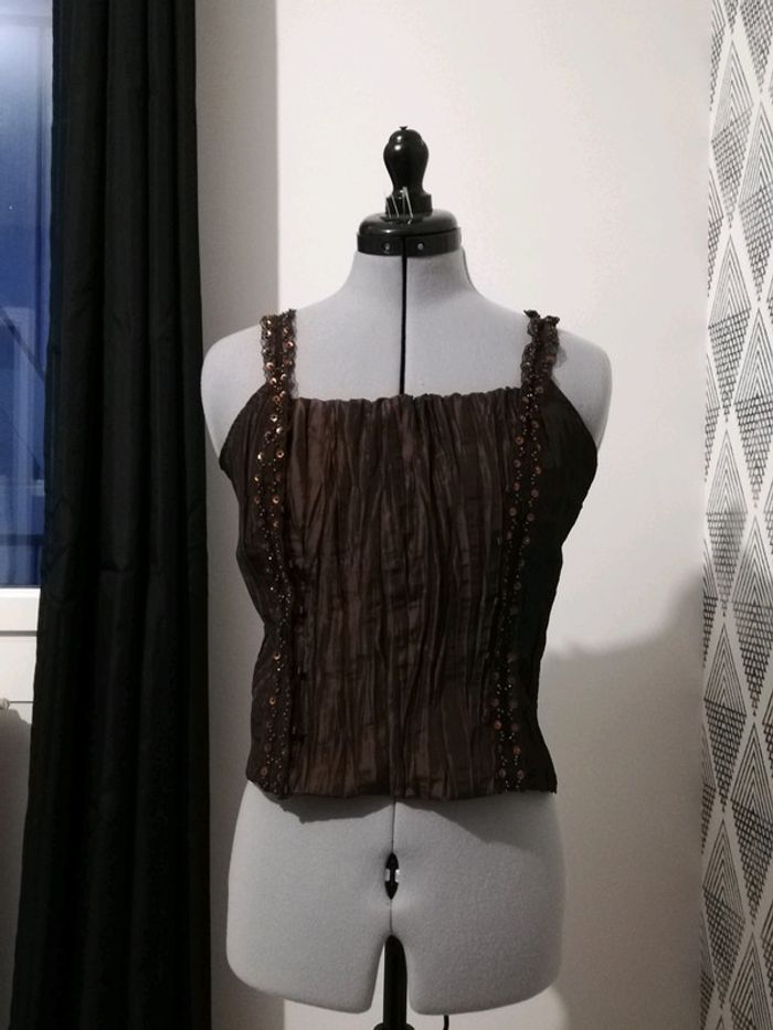 Magnifique bustier habillé plissé avec strass marron brillant comme sur la photo Bretelles réglables, se ferme grâce à une fermeture éclair #emmy_brg_taille40