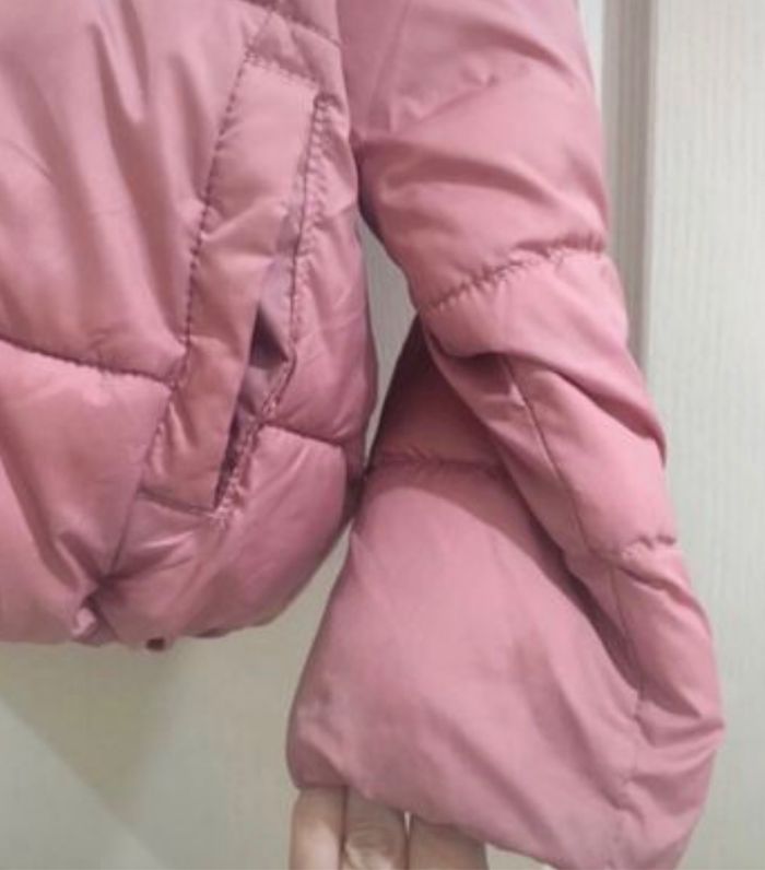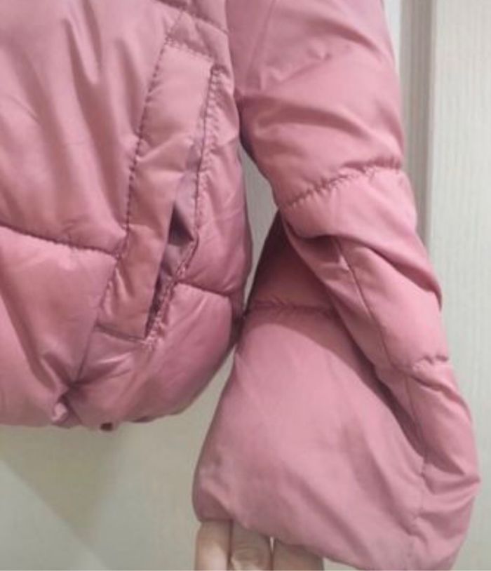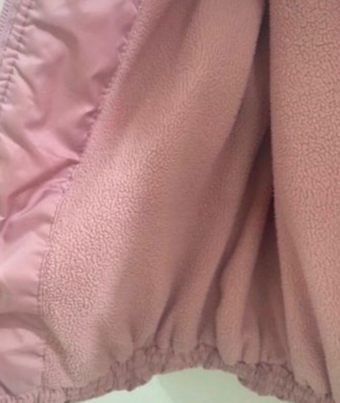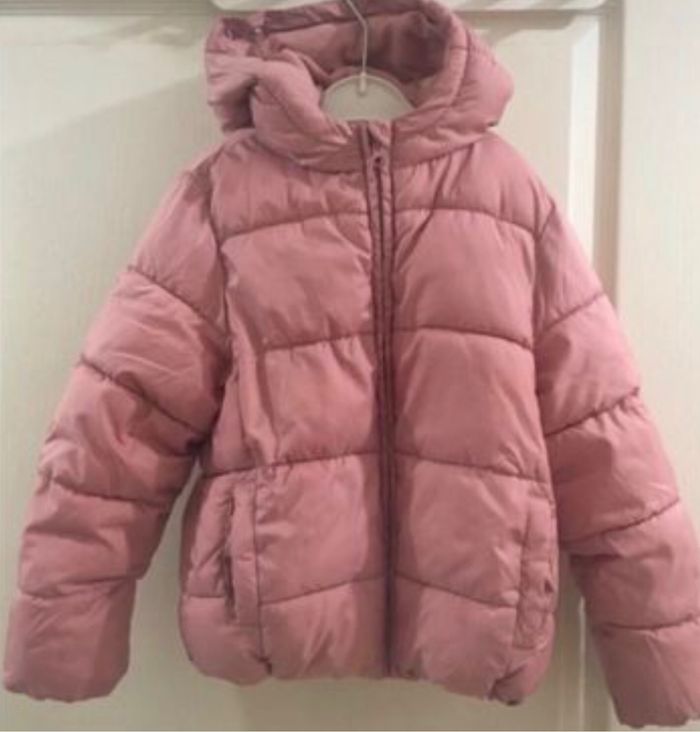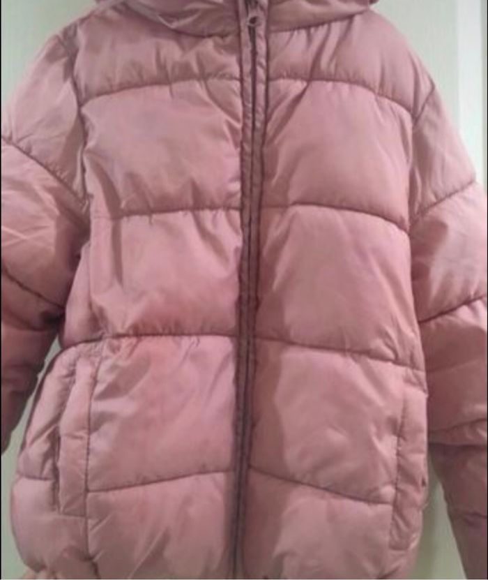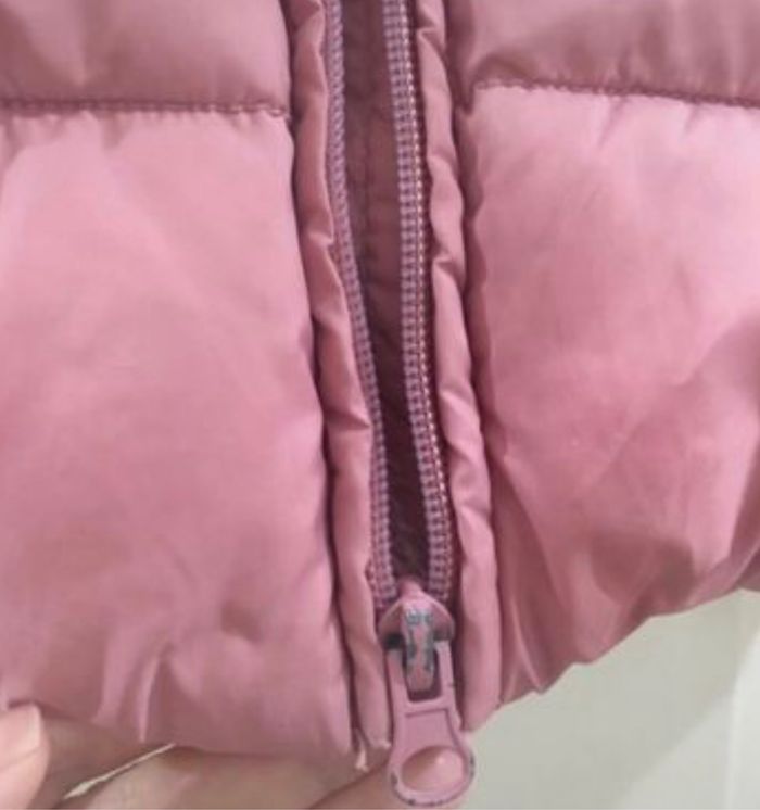 Blouson, veste matelassée, rose, 4-5 ans, marque Unit. Il a été écrit le prénom de ma fille dans l’étiquette.