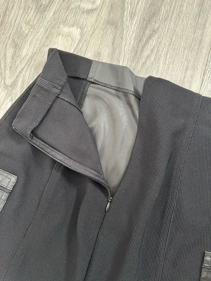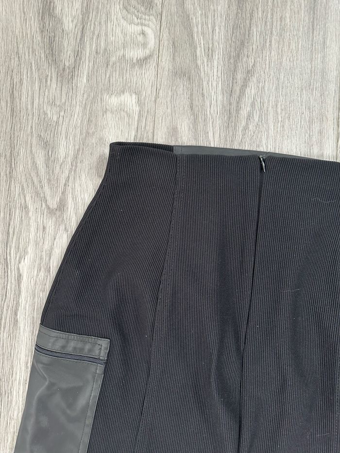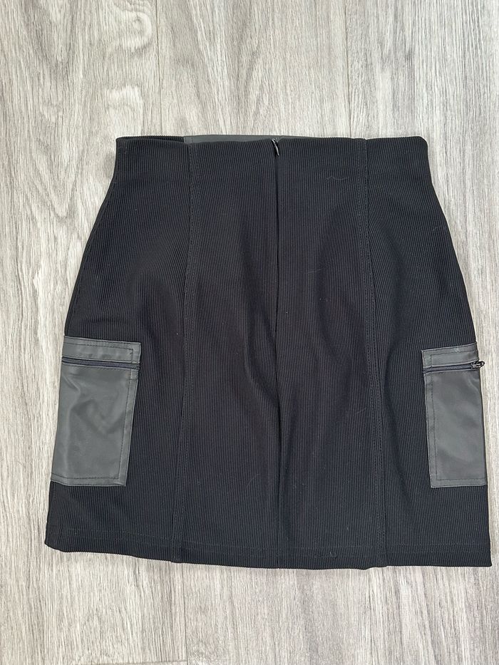 Minijupe - Excellent état - Taille 36 équivalent S - Couleur noire - Tissus côtelé - Empiècements néoprène satiné - Zip à l’arrière - Poches zip sur les côtés - Vintage, années 80-90’ - Pas d’étiquette de taille ni de matière Dimensions: - 33 à 38cm à la taille - 43cm de long