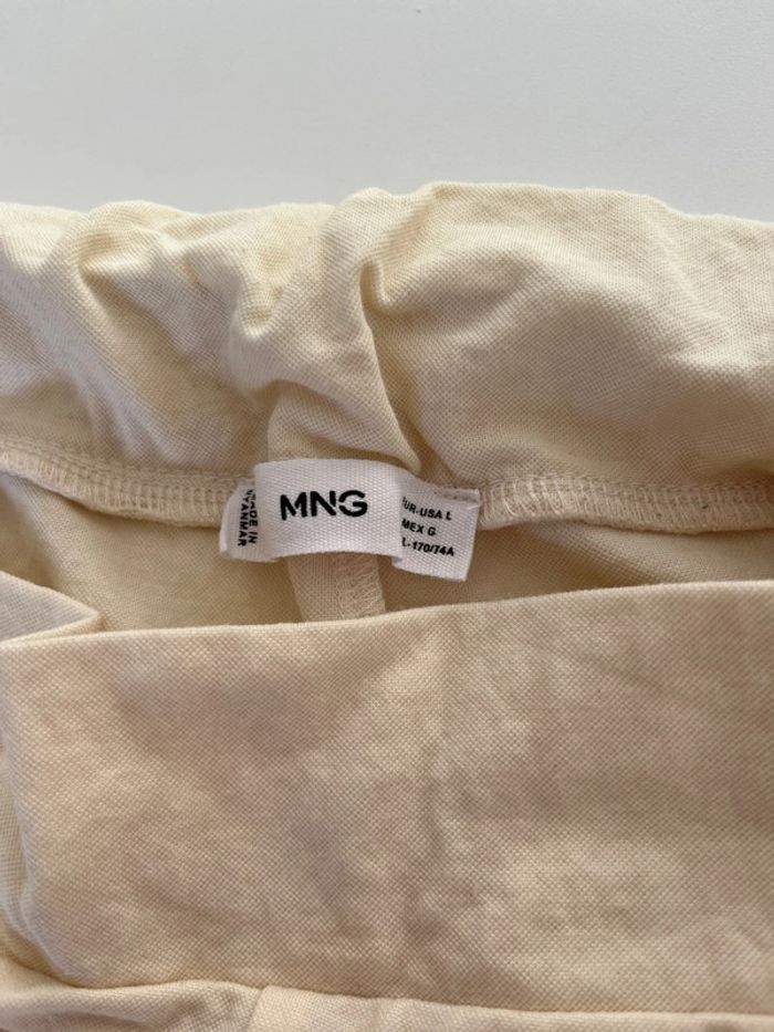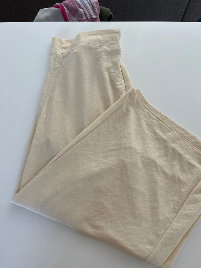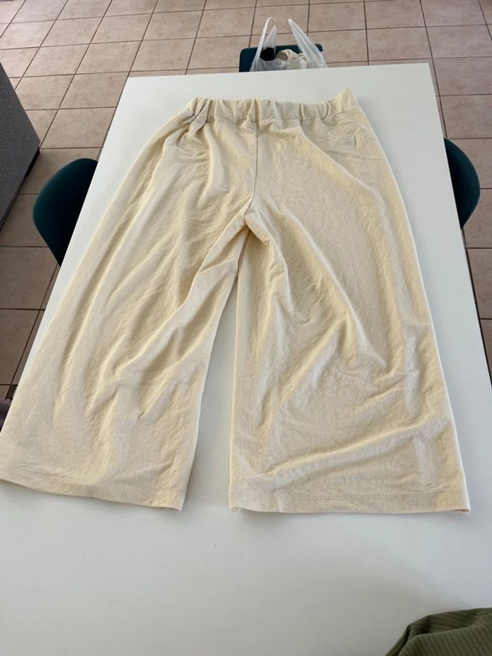 Pantalon couleur crème, fluide, très agréable à porter. Arrive un peu au dessus des chevilles cf dernière photo.