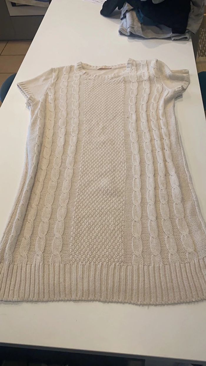 Pull long à manches courtes femme Taille S de chez Gémo mais convient tout à fait pour un taille M car extensible.
