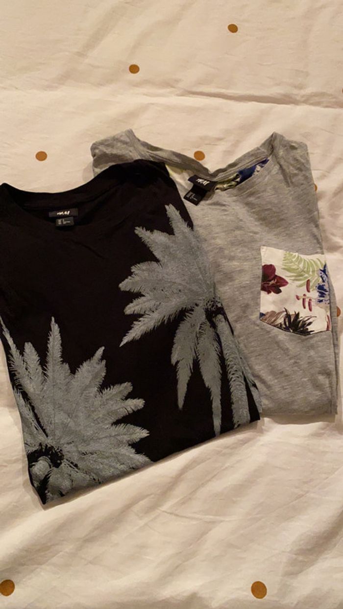 Lot de 2 t-shirts H&M pour homme. Le noir est taille S et le gris taille M mais comme sur la photo, ils font en réalité la même taille. Ils sont en bon état.