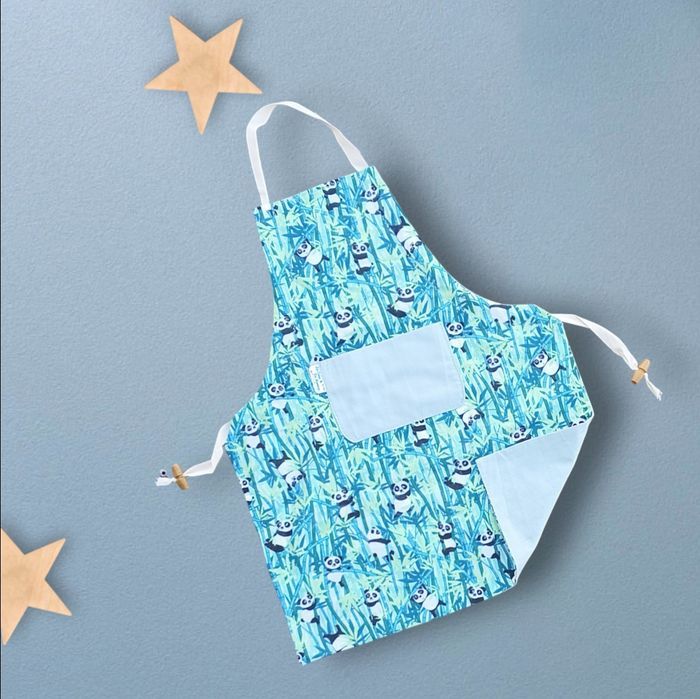Tablier pour activités telles que coloriage, peinture, ou faire de la cuisine avec Papa Maman. Tablier pour enfant de 3 à 6 ans En coton doublé. Fait-Main Une poche à l’avant qui peut être personnalisée. Des lanières à nouer au dos, stoppées par des perles en bois vernies pour éviter que la lanière ne s’échappe au lavage. Pour l'entretien : - lavable en machine à 30° maximum - Pas de séchage en machine - Pas de repassage à proximité de la personnalisation et bouton pression Tous mes tissus sont lavés à l'achat avant confection afin d'éviter des rétrécissements au premier lavage de l'acheteur . Mes créations sont artisanales, dessinées, découpées et cousues main. Les courbures ne peuvent donc être parfaites et totalement identiques d'un produit à l'autre.