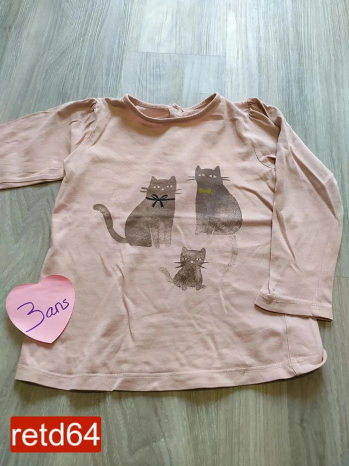 t-shirt manches longues 3 ans rose dessin en très bon état boutons pression au dos un tout petit trou au dos (voir photo) peux être reprisé mais je ne sais pas faire Pour voir toutes mes annonces de cette catégorie, suivez ce lien : #RetDfille3ans