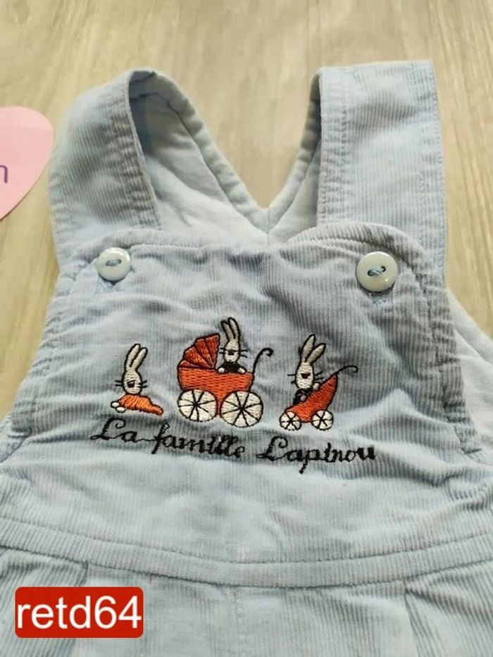 salopette chaude 1 mois bleu clair, côtelé et molletonné souple et confortable motifs devant bretelles réglable avec les boutons boutons pressions entre les jambes Pour voir toutes mes annonces de cette catégorie, suivez ce lien : #RetDgarçon1mois