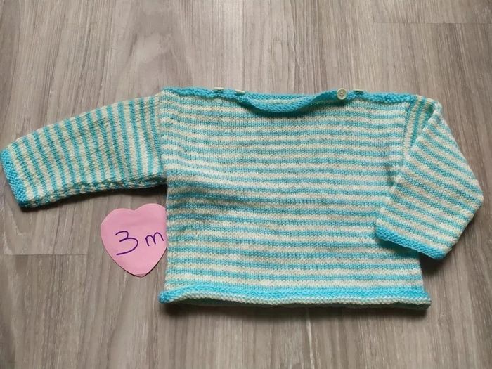 pull 3 mois col bateau avec 2 boutons à chaque épaule rayé bleu et blanc bas roulé fait main Pour voir toutes mes annonces de cette catégorie, suivez ce lien : #RetDgarçon3mois #RetDfille3mois