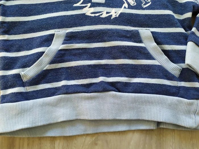 sweat à capuche 12 mois bleu à rayures bleu clair 3 boutons devant écriture devant grande poche ventrale bien porté mais pas abimé Pour voir toutes mes annonces de cette catégorie, suivez ce lien : #RetDgarçon12mois