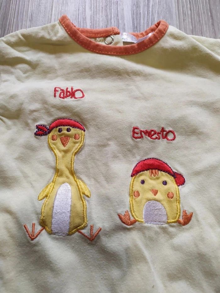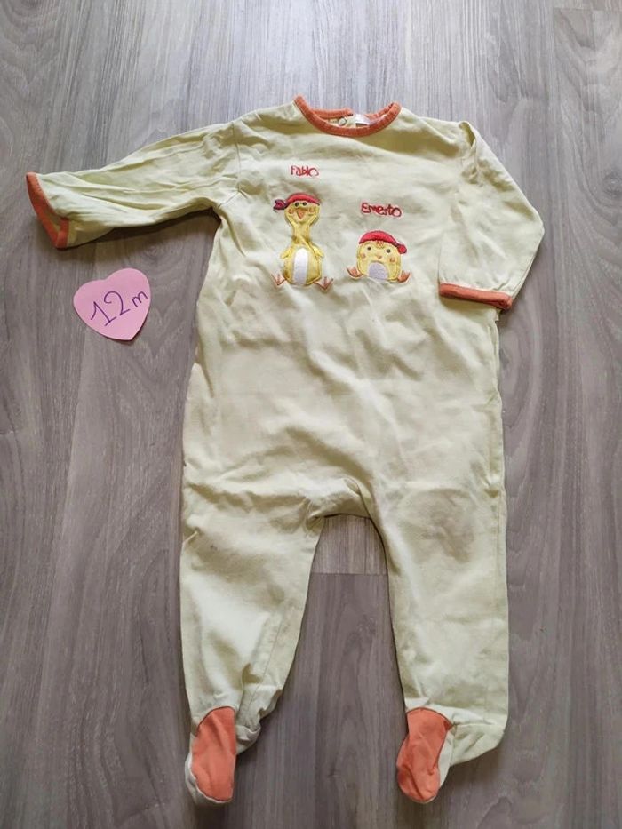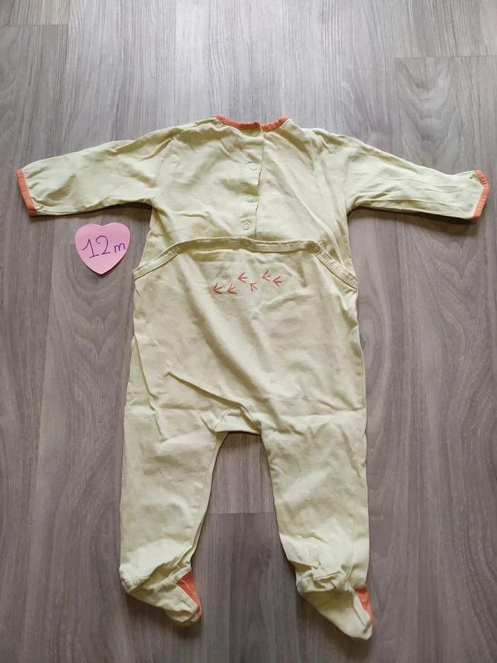 pyjama léger demi saison 12 mois vert-jaune clair avec détails rorange motif devant et dos boutons pression au dos petite tache au genou (voir photo) bien porté Pour voir toutes mes annonces de cette catégorie, suivez ce lien : #RetDgarçon12mois